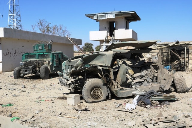 The incident happened after Taliban militants detonated four explosives-packed armored vehicles in the district.