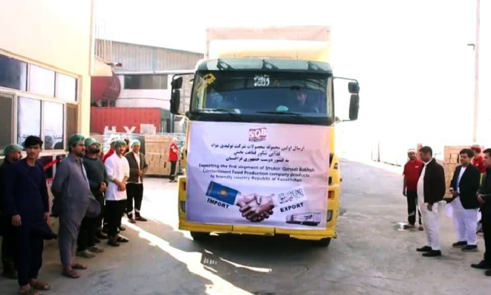 The first shipment of Afghanistan-made biscuits, a product of a private factory in Balkh province, was exported to Kazakhstan on Monday through the port of Haritan on the Uzbekistan border.