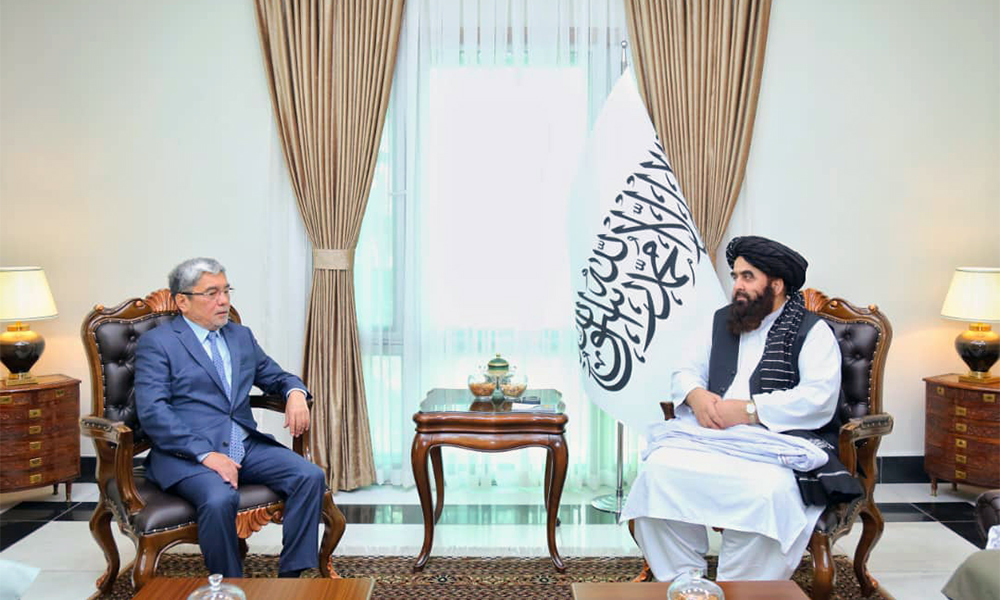 Afghanistan’s Foreign Minister, Mawlavi Amir Khan Muttaqi met with Kazakhstan Ambassador to Afghanistan Alimkhan Yessengeldiyev on Sunday and discussed a number of issues including those relating to security and the economy.