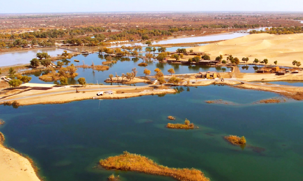 China’s largest desert in the northwestern Xinjiang Uyghur Autonomous Region has seen multiple lake formations this year, which an environmental expert described as a warning about climate change.