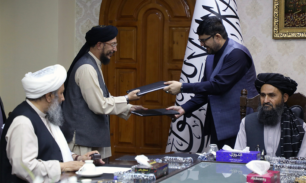 The contract was signed in the presence of Mullah Abdul Ghani Baradar Akhund, Economic Deputy Prime Minister and the Minister of Communications and Information Technology Mawolvi Najibullah Haqqani.