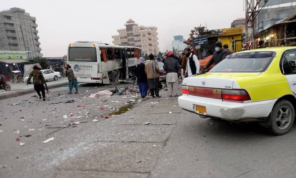 “Today around 7 a.m. a roadside mine blast took place in District 3 of Mazar-e-Sharif city on a bus, which belonged to Hairatan Oil employees,” said Mohammad Asif Wazeri, police spokesman for northern Balkh province, adding that at least nine people were also wounded in the explosion.