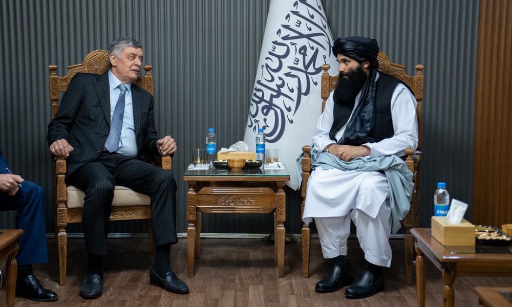 Afghanistan’s Foreign Minister Amir Khan Muttaqi met on Tuesday with Russia’s special envoy to Afghanistan Zamir Kabulov in Kabul, where the two sides discussed expanding political ties and deepening economic cooperation between the two countries.