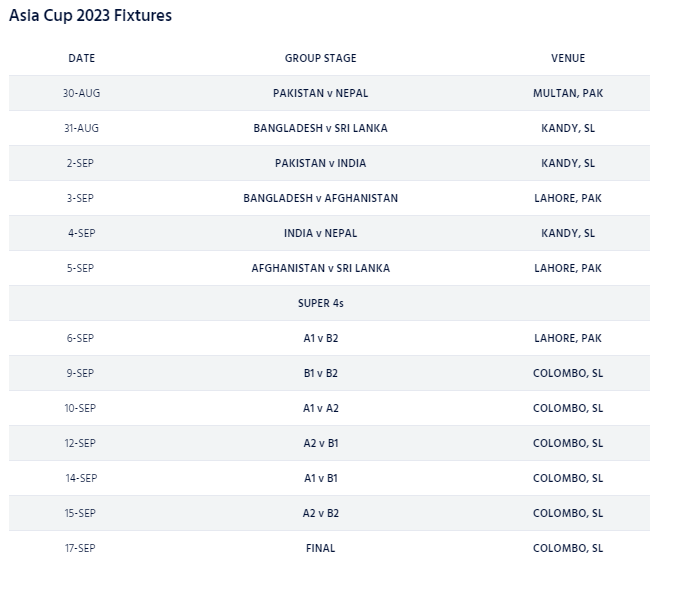 Asia Cup 2023 schedule announced