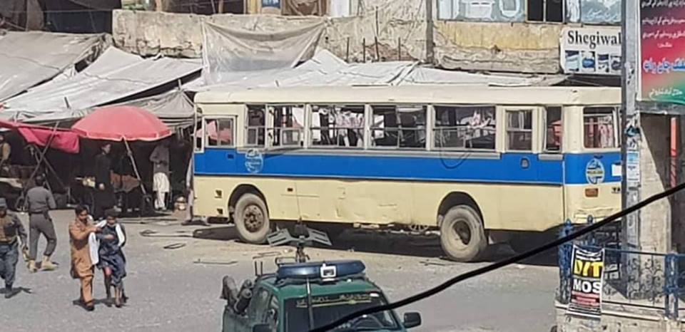 Provincial governor spokesman Ataullah Khogyani told Ariana News that explosives were placed inside the bus and five people were injured in the incident.