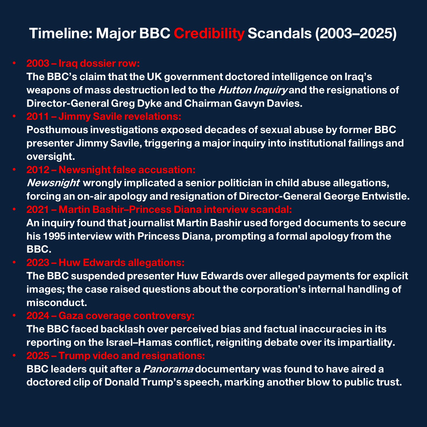 As the broadcaster approaches its next Royal Charter renewal in 2027 — a review that will determine its funding and public remit — the crisis is seen as a defining test of whether the BBC can restore confidence, enforce accountability and reclaim its place as one of the world’s most trusted news organizations.