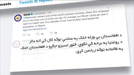 سیگار در صفحهی تویتر خود نگاشته است که: “مردم فقیر افغانستان به طور میانگین سالانه تنها هشت دالر را در بخش صحت به مصرف میرسانند. چهار دهه جنگ در افغانستان به مردم این کشور را به گونهی ظالمانه آسیب رسانیده است.”