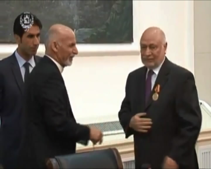 رییس جمهور احمدزی همچنان به پوهاند عظیمی قاضی القضات پیشین مدال عالی دولتی غازی امیر امان الله خان را اهدا کرد. .