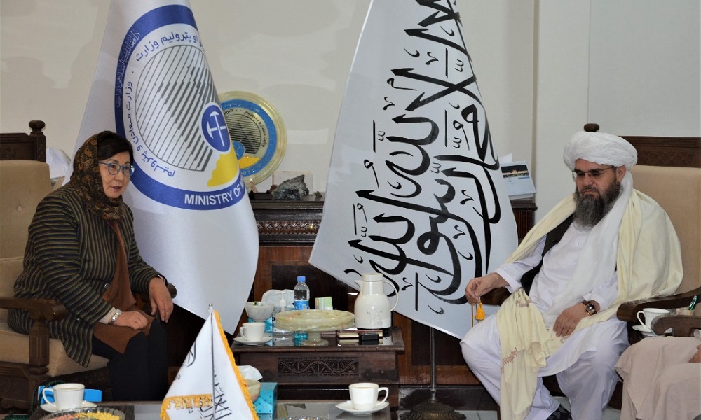 رزا اوتونبایوا، فرستاده ویژه سازمان ملل در ادامه دیدارهایش با مقامات امارت اسلامی، این بار با شهابالدین دلاور، وزیر معادن و پترولیم و رییس کمیسیون تماس با شخصیتها دیدار و گفتگو کرده است.