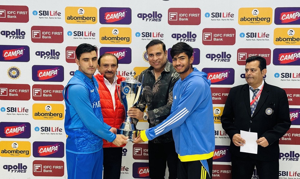 تیم کریکت زیر ۱۹ سال افغانستان و حریف هندی اش مشترکاْ قهرمان مسابقات سه جانبه در بنگلور شدند