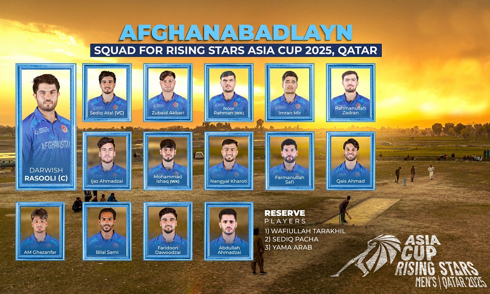 کریکت بورد افغانستان فهرست تیم ملی کریکت الف کشور را برای جام آسیایی جوانان ۲۰۲۵ اعلام کرد که قرار است از ۱۴ تا ۲۳ نومبر در دوحه، پایتخت قطر، برگزار شود.
