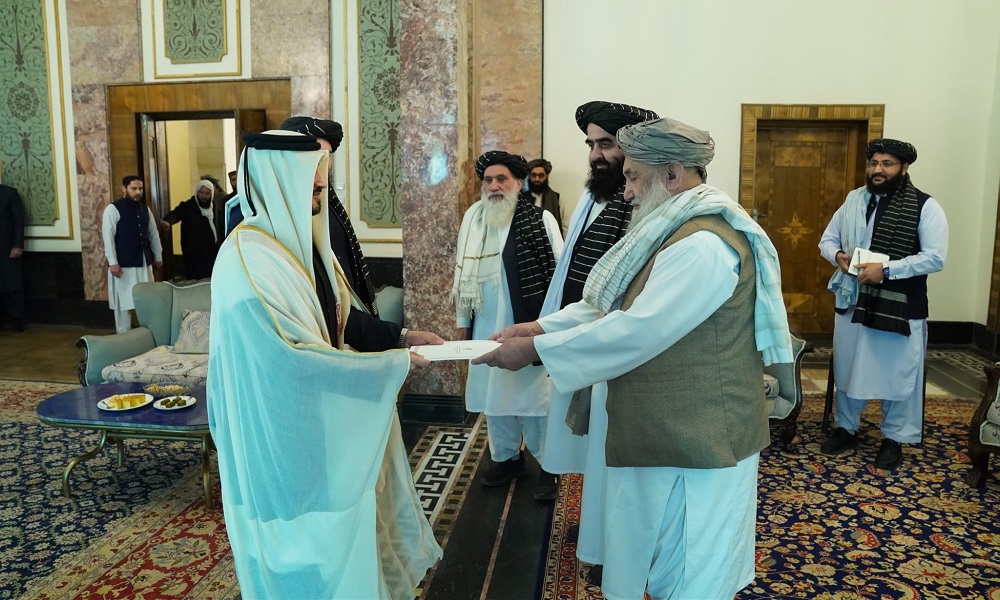 ملا محمد حسن آخند، رئیسالوزرای امارت اسلامی افغانستان، پیش از چاشت امروز طی مراسمی رسمی در قصر گلخانه، اعتمادنامه مردف بن علی القاشوطی سفیر جدید دولت قطر برای افغانستان را پذیرفت.