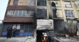 Footage from the site of the fire showed the front of the building had been burnt black, while the windows of the already damaged building had been broken. Firefighters, police officers and emergency teams were at the site to examine the damage, the footage showed.