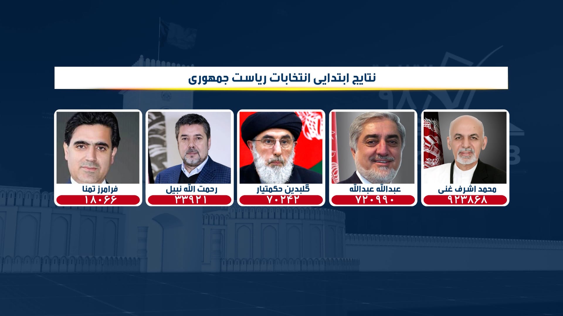 The Independent Election Commission (IEC), has announced the preliminary results of the Afghan presidential election on Sunday, December 22, 2019.