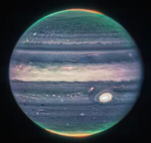 This image was extremely difficult to achieve due to the fast motion of Jupiter across the sky relative to the stars and because of its fast rotation. The success proved the Webb telescope’s ability to track difficult astronomical targets extremely well.
