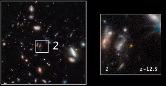 It is also a view only the JWST can achieve. Astronomers did not know quite what to expect; an image of this galaxy taken with Hubble would appear blank, as the light of the galaxy is stretched far into the infrared by the expansion of the universe.