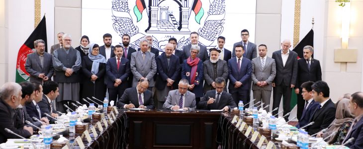 The MoU was signed between Mohammad Gul Khulmi, the acting minister of water and energy, Amanullah Ghalib head of Da Afghanistan Breshna Sherkat (DABS) and Representative of Agha Khan Fund for Economic Development.