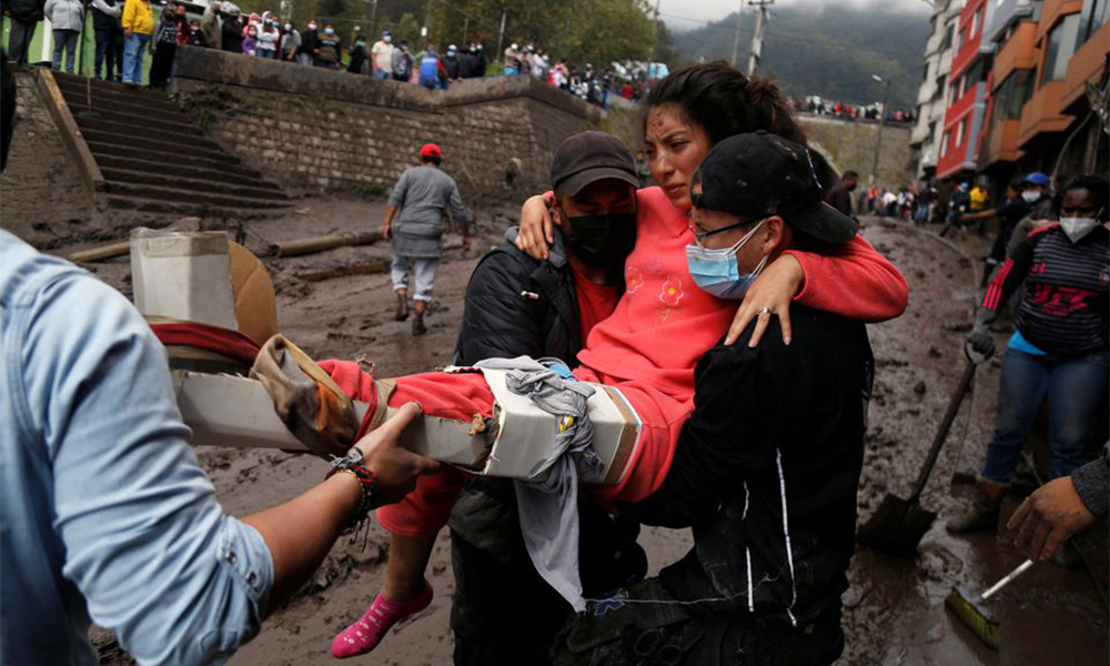 Ecuador’s worst rains in nearly two decades overwhelmed a dam near the working class neighbourhoods of La Gasca and La Comuna, sending mud and rocks down on residences and streets.