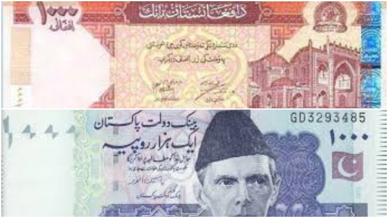Afghan currency which is double in value against Pakistani rupee, being exchanged at the same value in business transactions in eastern Paktia province of Afghanistan. Local...