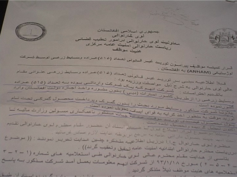 ANHAM, a private company has imported more than five hundred armored vehicles to Afghanistan without payment of customs, according to documents related to Attorney General’s Department....