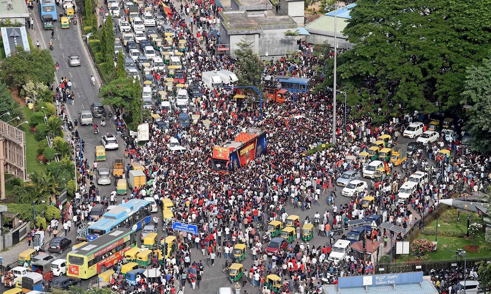 د چارواکو د څرګندونو له مخې؛ د بنګلور چیناسوامي لوبغالي ته له اجازې پرته د مینوالو د ننوتلو په هڅه د خلکو ګڼه ګوڼه رامنځته شوه. خپاره شوي انځورونه ښیي، چې خلک د یو بل پر سرونو ختلي دي.