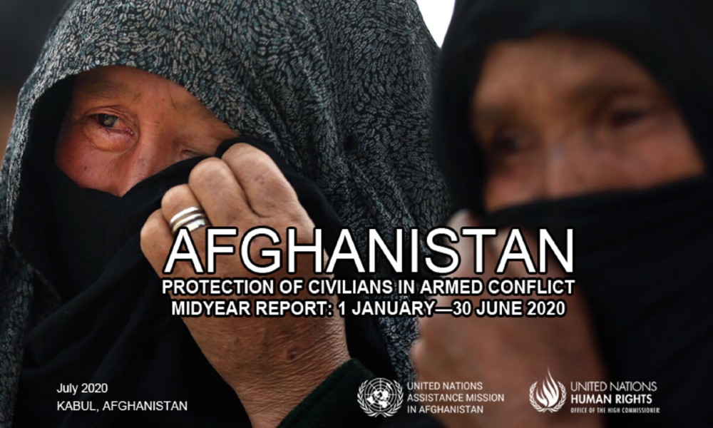د ملګرو ملتونو د تازه راپور له مخې، چې نن خپور شوی ښيي، چې: د ۲۰۲۰ کال په لومړیو ۶ میاشتو کې ۳۴۵۸ ملکي وګړیو ته مرګ و ژوبله اوښتې، چې۱۲۸۲وژل شوي او ۲۱۷۶ نور ټپیان دي. دغه راز د تاوتریخوالي کچه کله لوړه او کله هم کښته شوې او په افغانستان کې یې ملکیان اغېزمن کړي.