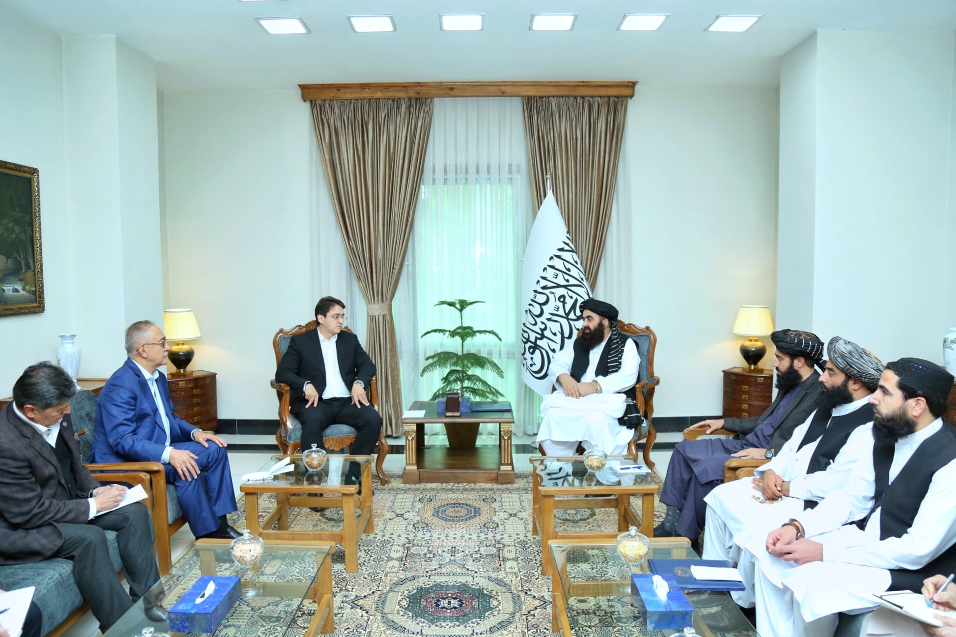 د افغانستان اسلامي امارت بهرنیو چارو وزیر امیرخان متقي د افغانستان او منځنۍ آسیا د مشورتي خبرو د لومړنۍ ناستې په څنډه کې د ازبکستان جمهوریت بهرنیو چارو وزارت له مرستیال بابر عثمانوف سره د لیدنې پر مهال د اړیکو د پیاوړتیا، فرصتونو او د سیمې د وضعیت په اړه بحث او خبرې کړې دي.