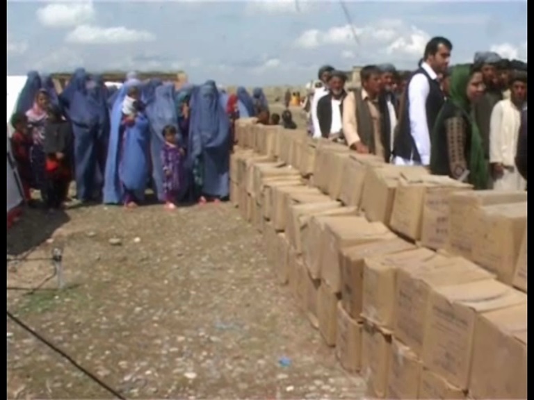 دغه مرستې، چې په کې پوښاك او خواراکي توکي شته پر یوسل و اتلس بیځایه شويو کورنیو او په خاصه توگه پر ښځو اوماشومانو د دغه بنیاد د استازی صمد خان او د تخار ولایت د یو شمېر سیمه ییزو چارواکو په وړاندی ووېشل شوې.