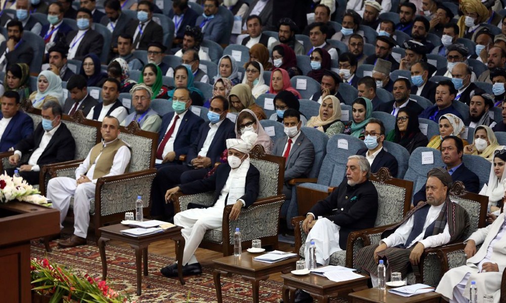 د قوم او ټولنې د مشرانو او سیاستوالو د ۳۲۰۰ کسیزې مشورتي جرګې مشري د ملي پخلاینې عالي شورا مشر عبدالله عبدالله کوي.