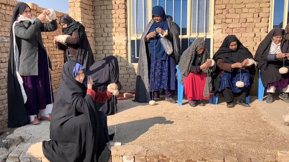 اوس مهال له بلخ، فاریاب، سرپل او جوزجان ولایتونو څخه سلګونه مېرمنې چې د جګړو له امله مزار شریف ښار ته راکډه شوي او هغو کارخونو لپاره په کمو پیسو تار اوبي چې په دې وروستیو کې د پلور بازار یې له لاسه ورکړی.