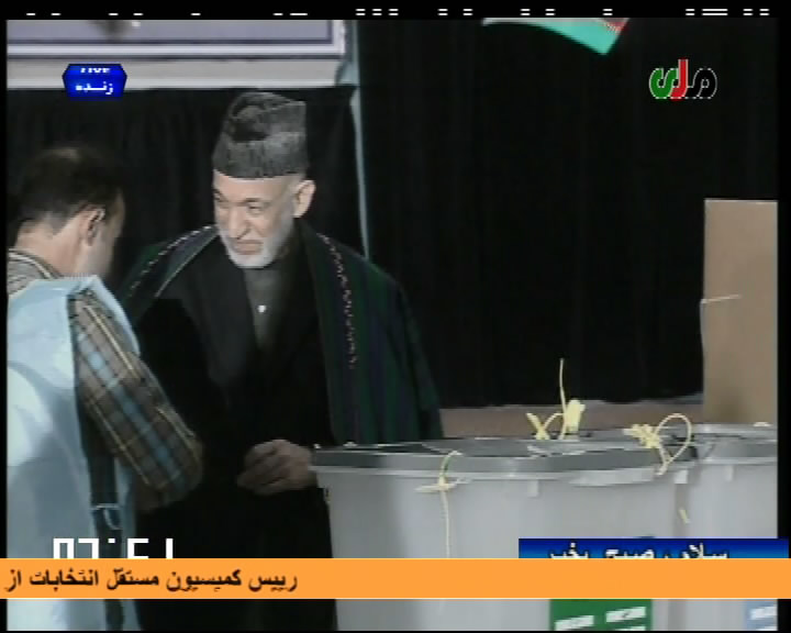 نن هم د تېر په څير افغان ولسمشر حامد كرزى د راى اچونې په كڅوړه كې د خپلې راې په كارونه دغه ملي بهير پيل كړ.