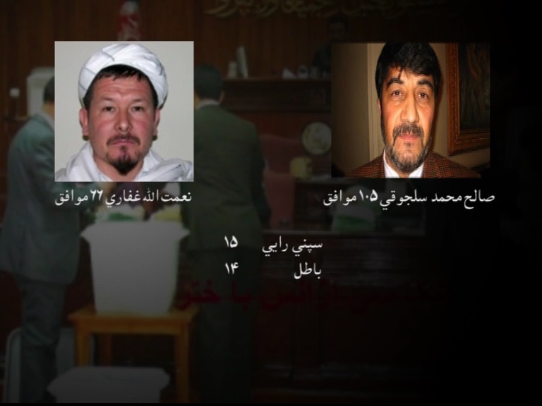 د ولسي جرګې د یکشنبې ورځی ( د کب په ۲۵ ) په عمومي غونډه کې ٢٠١ تنه حاضر وو او هر کانديد بايد د برياليتوب لپاره ١٠١ رايې ترلاسه کړې واى.
