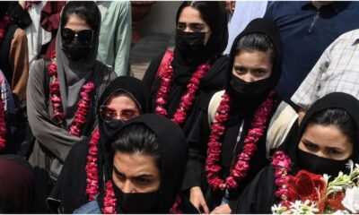 Getty ImagesWomen footballers arrive in Pakistan د افغانستان د ښځو د فوټبال یو شمېر لوبغاړې او د کورنیو غړي یې د سه شنبې پر ورځ پاکستان...