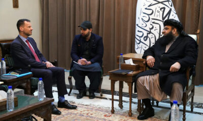 د افغانستان لپاره د اروپايي ټولنې استازیو توماس نیکولسون او رافایل یودیچي د لومړي وزیر له سیاسي مرستیال مولوي عبدالکبیر سره په لیدنه کې د نجونو...