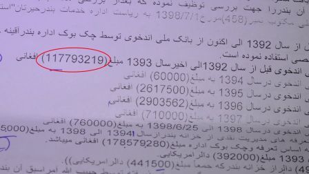 له بلې خوا د سوداګرۍ وزارت اسناد هم ښيي، چې د اقینې بندر له عوایدو څخه څلور سوه یو څلوېښت زره دالر هم شخصي جیبونو ته لویدلي دي.