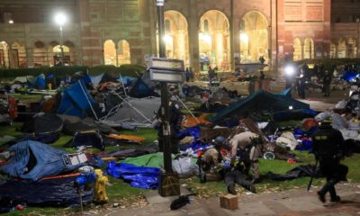 Hundreds of helmeted police swarmed the site of a pro-Palestinian protest at the University of California at Los Angeles early on Thursday, firing flash bangs, arresting...