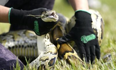 The largest Burmese python ever seen in Florida was caught by researchers who used another python to lure it out of its hiding place in the...