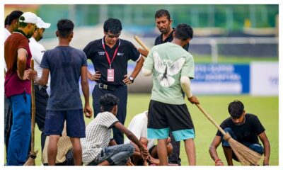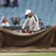 No play was possible on Day 1 because of a wet outfield, despite ground staff working hard to get the game started