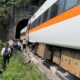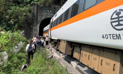 A Taiwan express train with almost 500 aboard derailed in a tunnel on Friday after hitting a truck that had slid down a bank onto the...