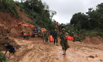 Rescue teams continue searching for more signs of life under the rubbles after landslides triggered by heavy rains from Typhoon Molave in Quang Nam province of...