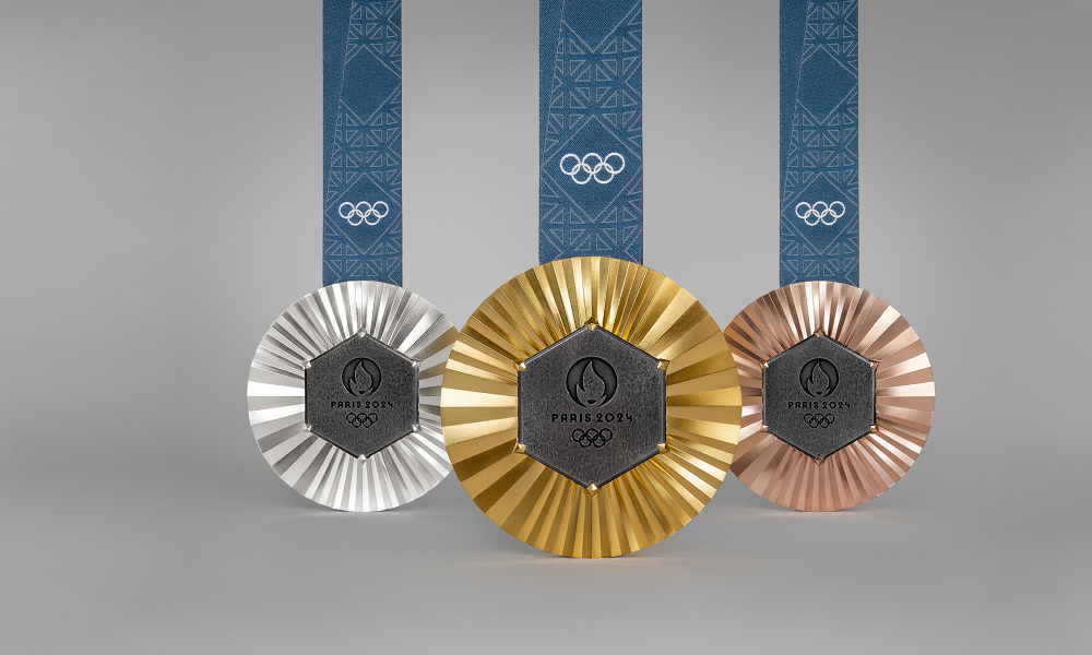 A piece of original iron from the iconic landmark will sit in the center of each bronze, silver and gold medal in a hexagonal shape, branded with the logo of the Games.